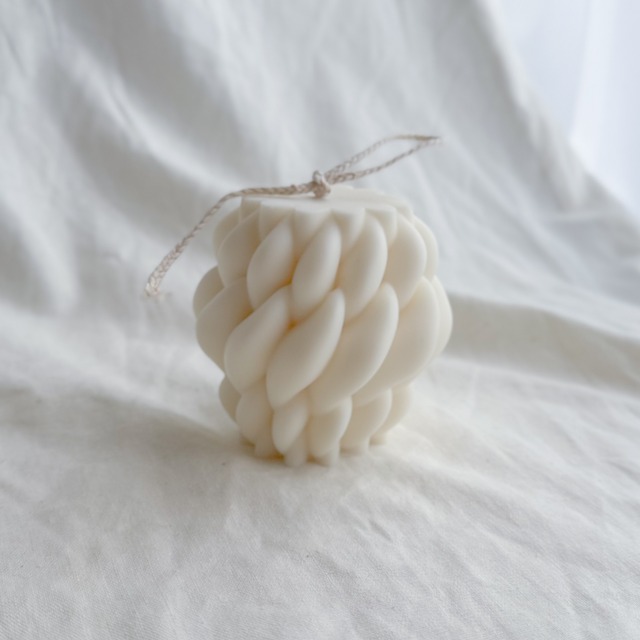 静かに編まれた、ひとしずく。 丁寧に編み込まれたような、なめらかな曲線が連なるフォルム。 均整のとれたその形は、ただそこにあるだけで、 空間を凛と引き締め、整えるような存在感を放ちます。 香りは、澄んだ空気のなかにふと咲くマグノリア。 みずみずしい花びらの奥に、ほのかな甘さと芯の強さが漂い、 軽やかでありながら、深く余韻を残します。 火を灯せば、静かに表情を変えながら、 ゆっくりと光と香りが満ちていく。 すこしだけ、呼吸を深くして過ごしたくなる—— そんな時間のそばに、そっと寄り添うキャンドルです。 size W9.4cm×H8.8cm ろうには、天然の国産ワックスをベースに、 香りや灯りとの相性を見ながら独自にブレンドしたものを使用しています。 そのため煙(すす)が出にくく、灯りが穏やかに続くのが特長です。 ゆっくりと溶け、静かに香る時間を、どうぞ安心してお楽しみください。 本キャンドルは、1回の使用につき1.5〜3時間を目安に灯し、 使用後はいちど火を消してロウが固まるまで休ませることを推奨しています。 逆に数分ごとにこまめに火を消してしまうと芯の周りのみロウが溶けて、本来の燃焼時間よりキャンドルを楽しんでいただける時間が短くなってしまいます。 おおよその燃焼時間は以下を目安にご覧ください。 約φ7×H10cm:約30〜35時間 ※燃焼時間は気温や空気の流れ、芯の長さ、灯す場所によって大きく前後します。あくまでも目安です。 ※ご使用前に、サイト内の「キャンドルの取り扱いについて」をご一読ください。 安全に、そして長くお楽しみいただくための大切なご案内を記載しております。