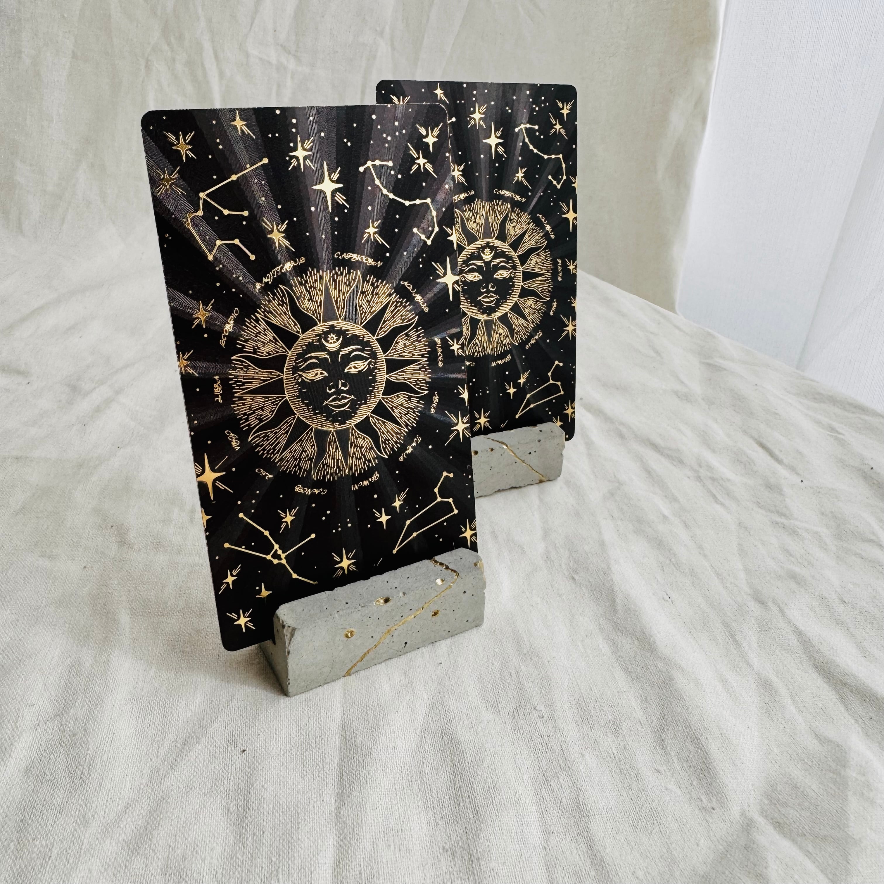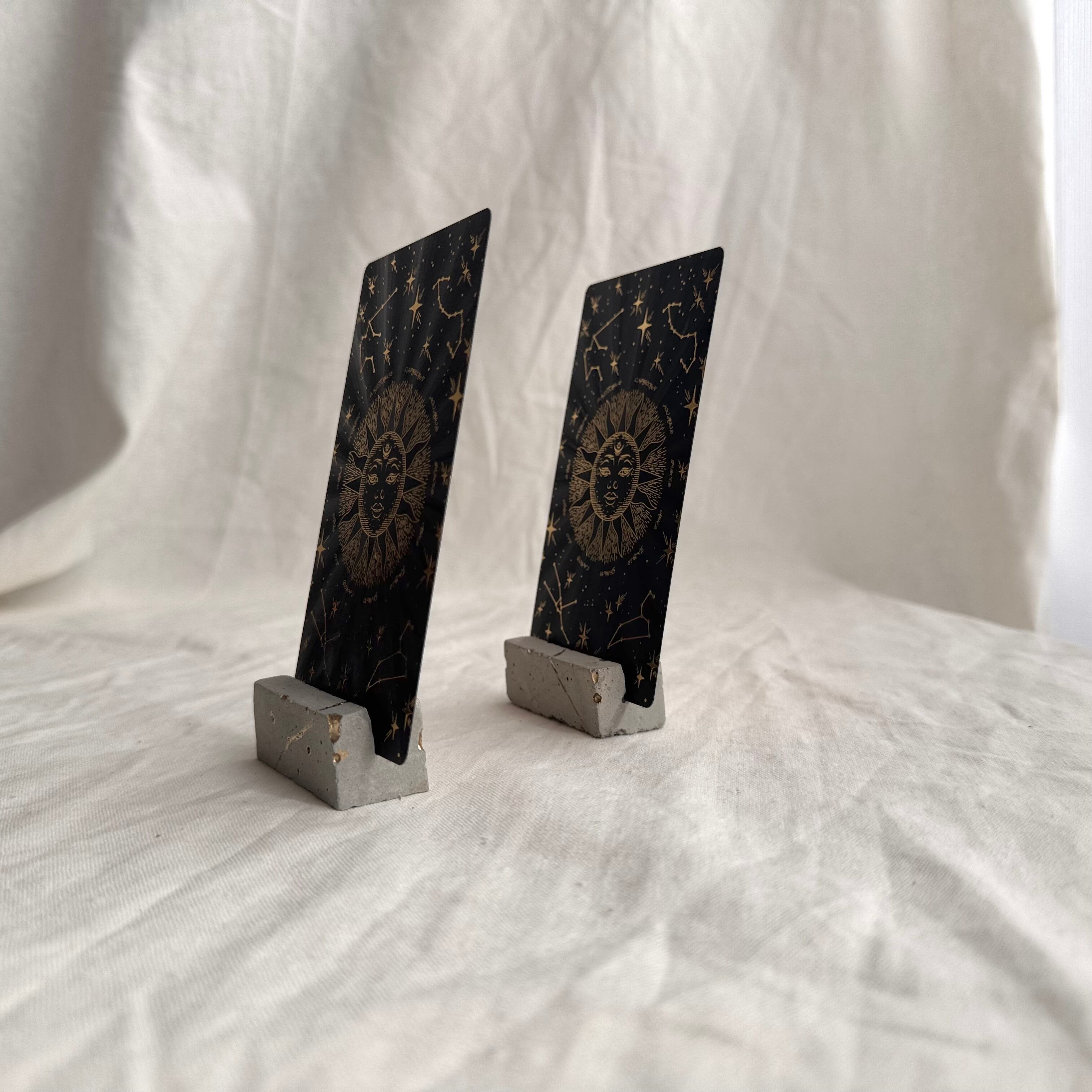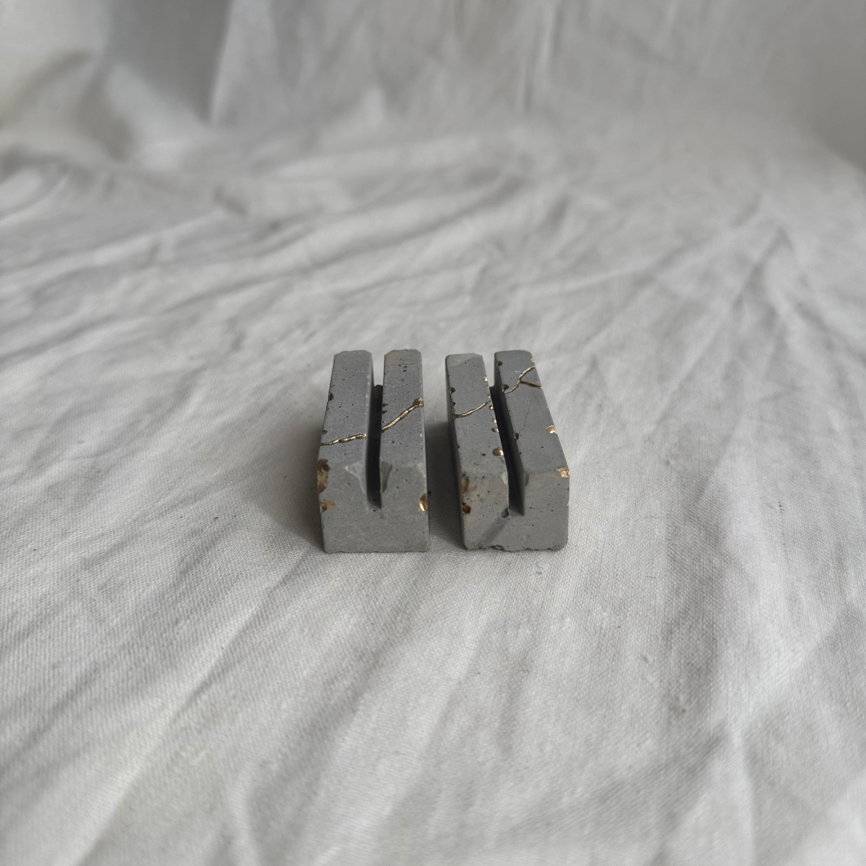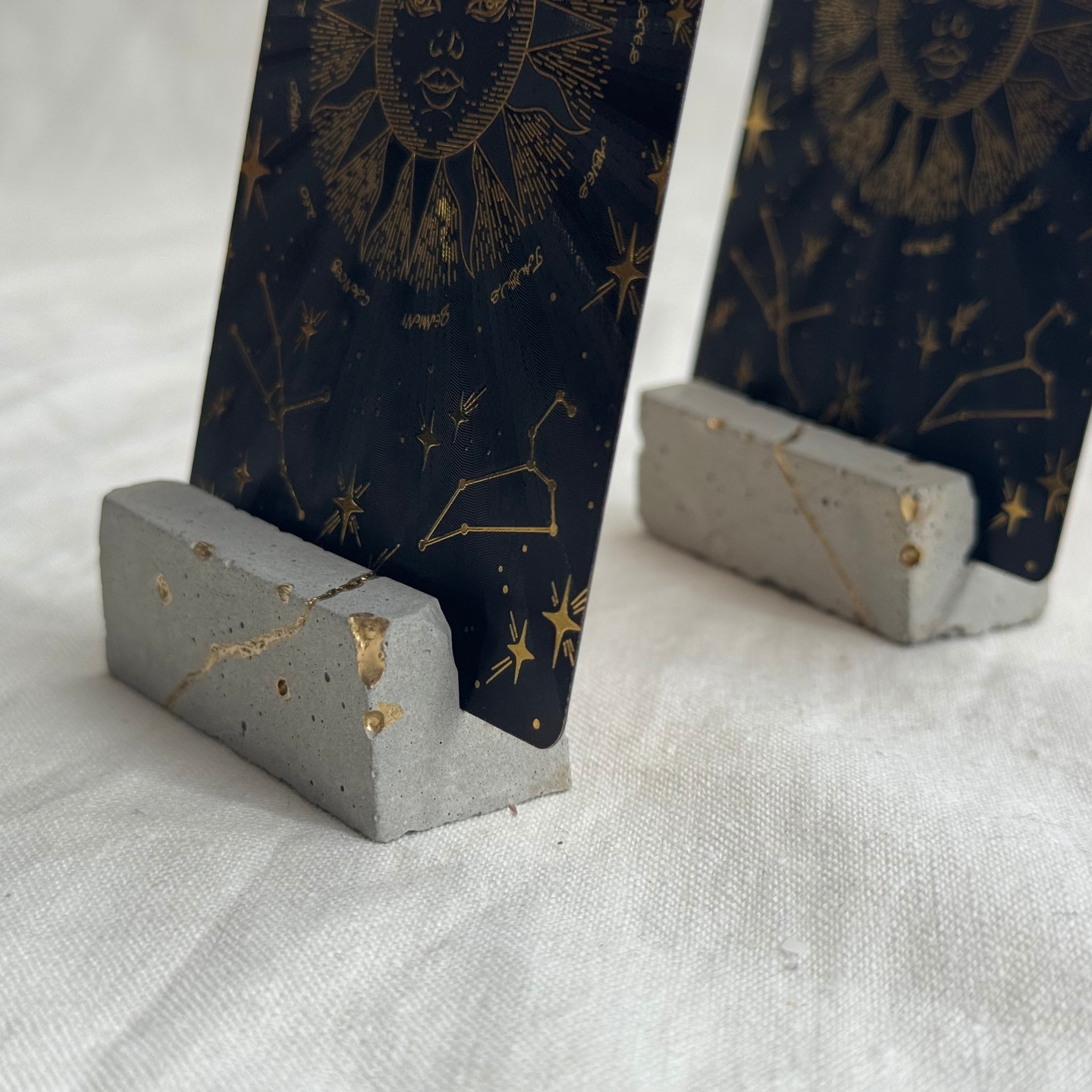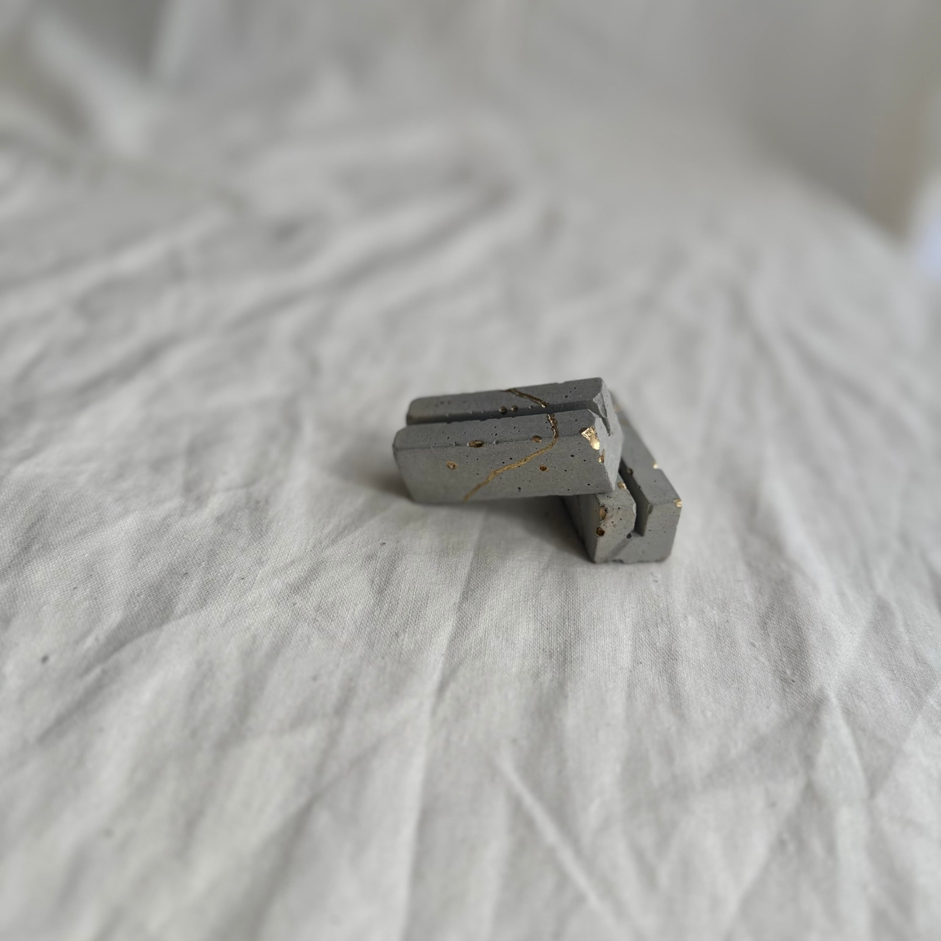 金継ぎ風のラインが入った、ミニマルで重厚感のあるコンクリート製ディスプレイスタンド。