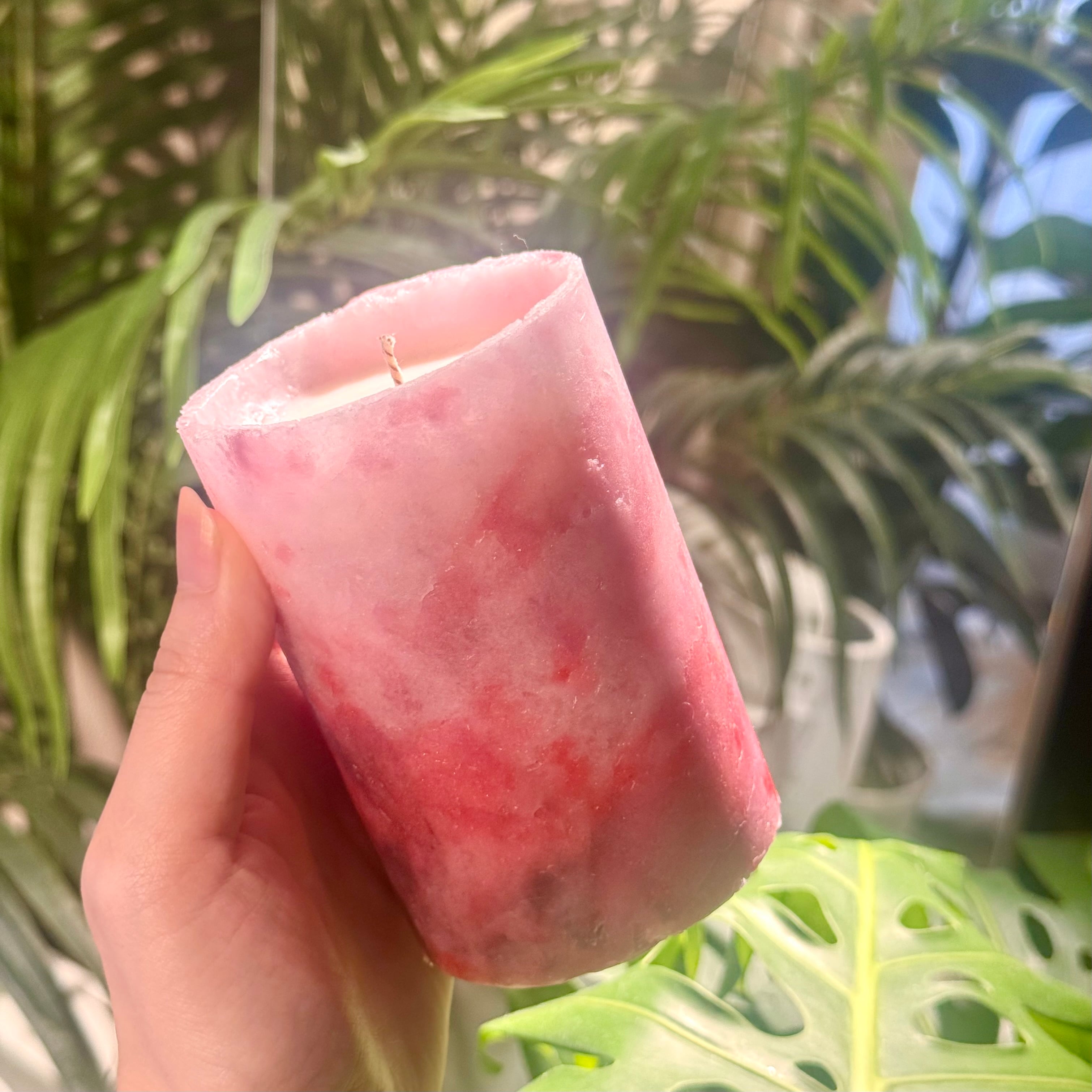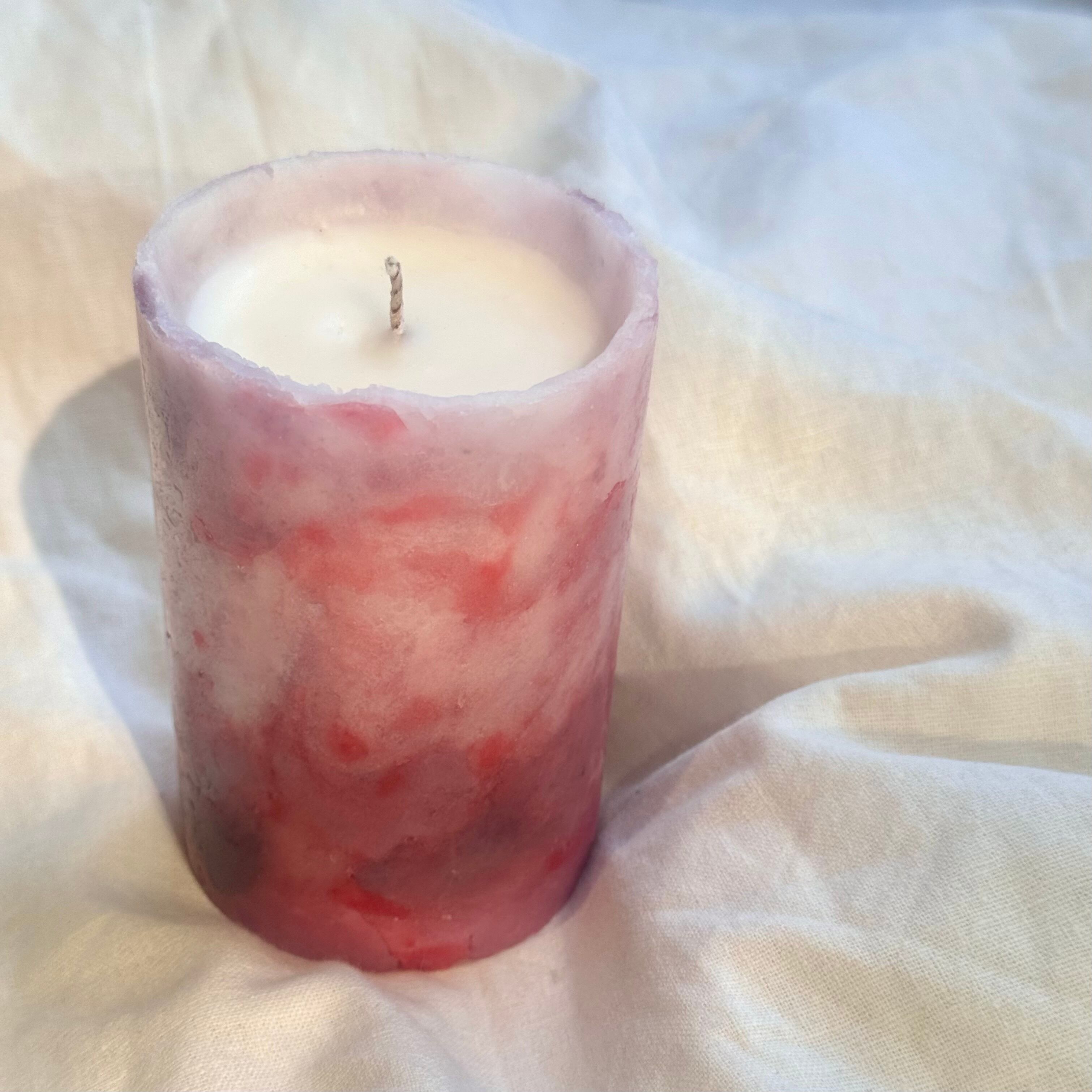 ※全体が溶けるタイプではなく、ランタンキャンドルのように周りが筒状に残るタイプのキャンドルです。